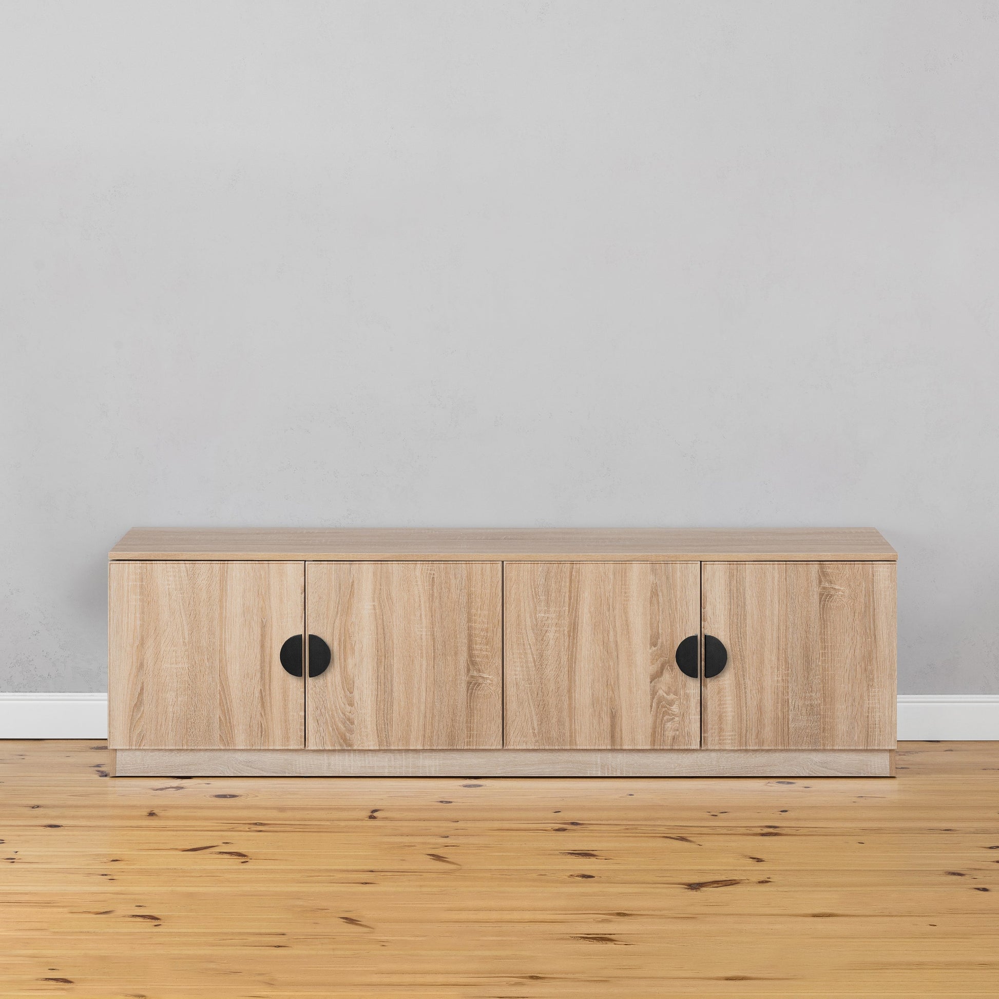 BUCHAREST TV UNIT- NATURAL OAK - SLIM - HALF MOON BLACK