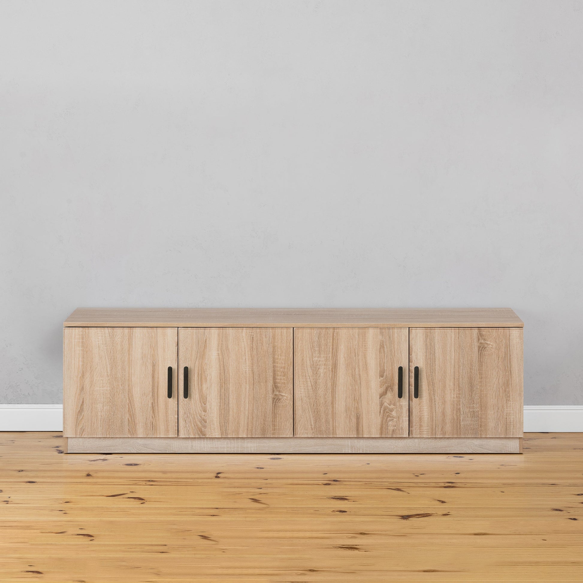 BUCHAREST TV UNIT- NATURAL OAK - SLIM - OVAL BLACK